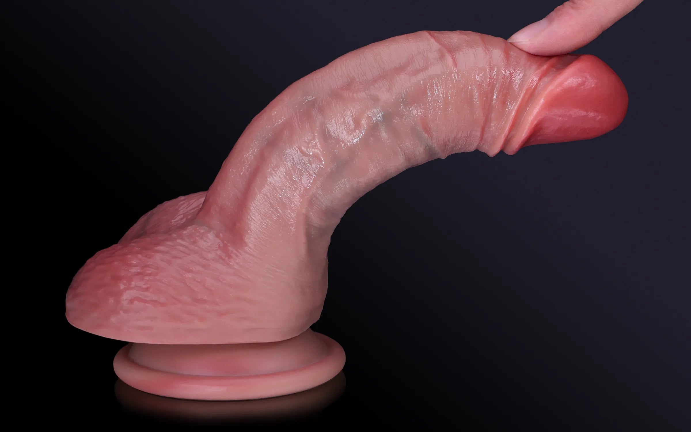 A sculpted, naturally swollen glans with a soft, blush-toned finish for true anatomical realism.