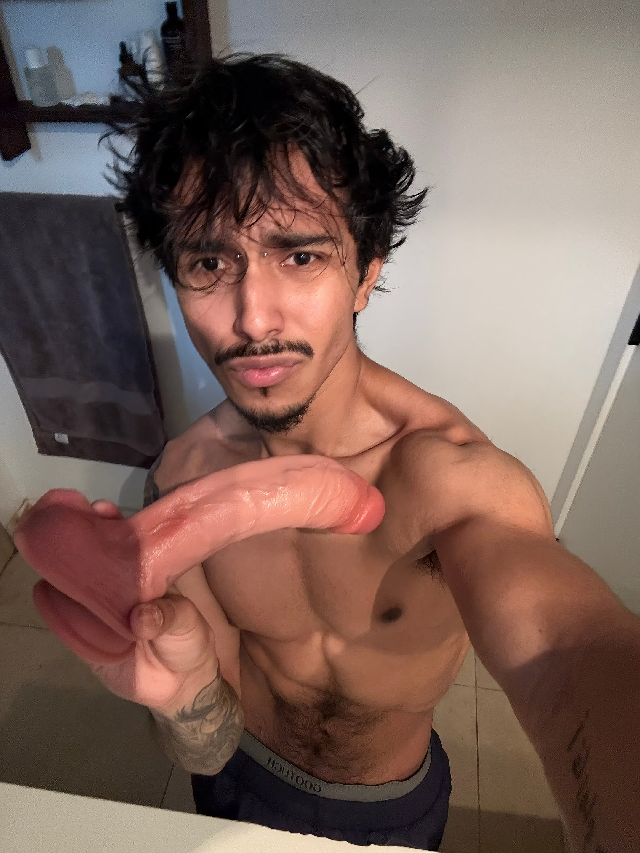 I can't even hold this thing with one hand, bro. This thing is too big. I want my bottom to swallow it right away. Obviously, I can't do it!