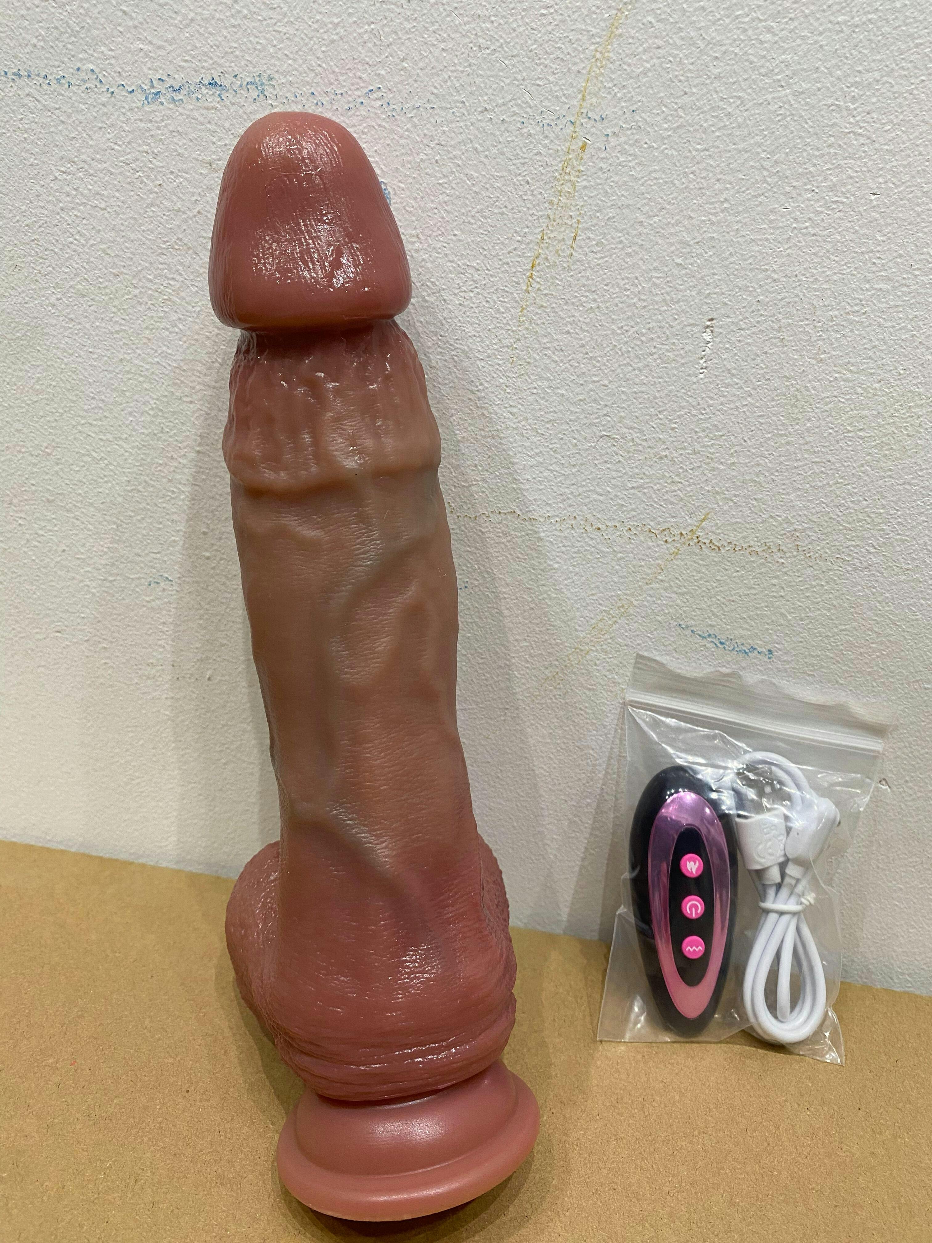 Thrusting Vibrating Heating Dildo with Swollen Glans